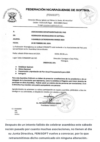Después de un intento fallido de celebrar asamblea este sábado recién pasado por cuanto muchas asociaciones, no tienen al día su Junta Directiva, FENISOFT vuelve a convocar, por lo que retransmitimos dicho comunicado sin ninguna alteración.-