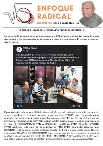 ¿PORQUE EL BASEBALL PREDOMINA SOBRE EL SOFTBALL?